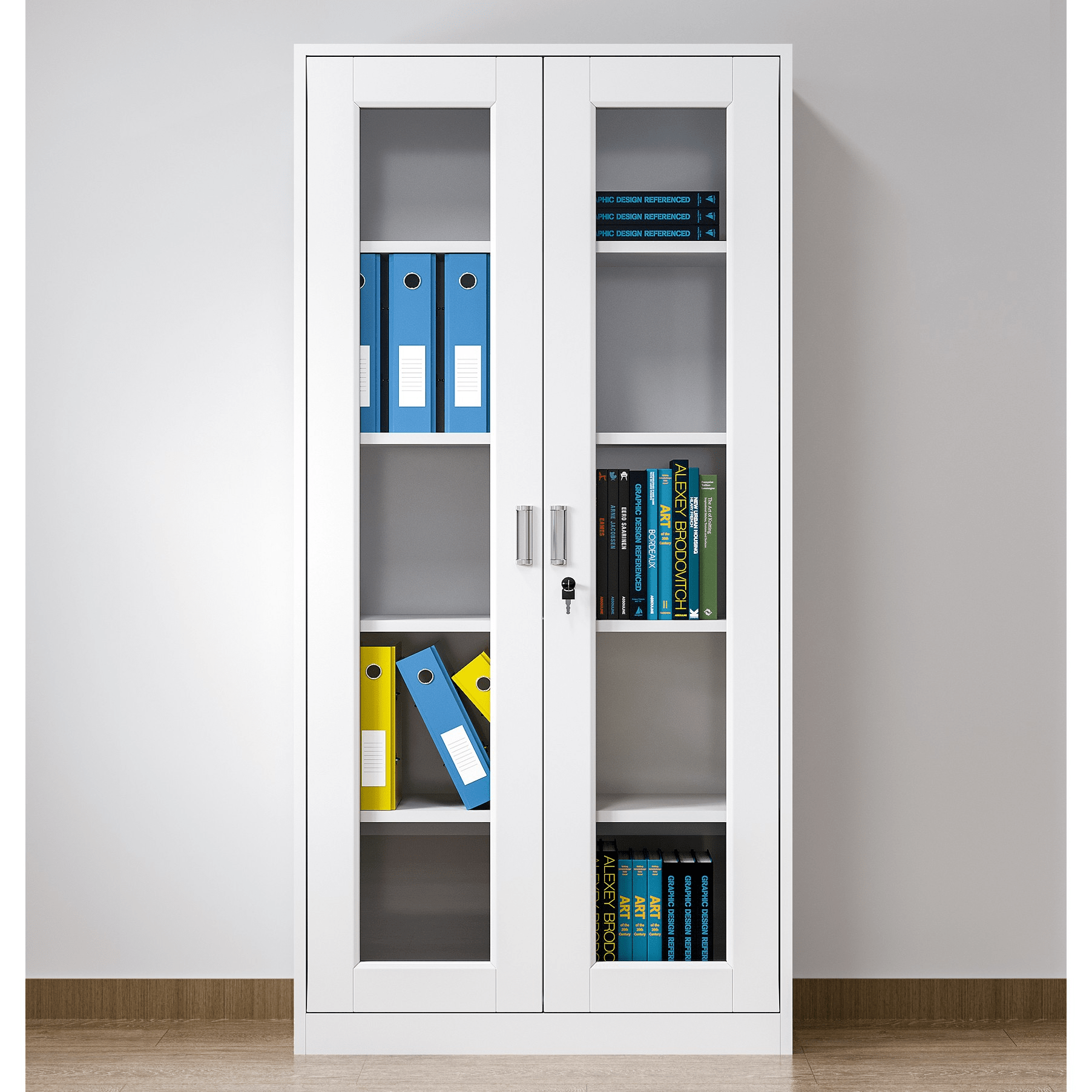 The dual swing doors provide easy and convenient access to all stored items, making it simple to retrieve or organize documents whenever needed.