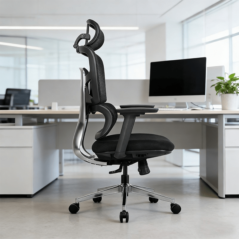 Supports the natural curvature of the spine, reducing fatigue and improving posture during extended work hours.